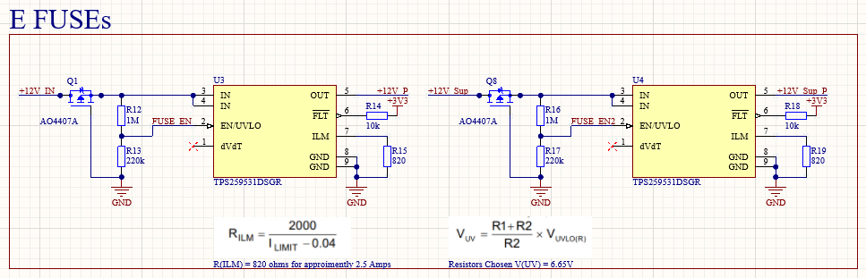 The very first step in in the Dashboard power stage is a P-Channel MOSFETs used for reverse polarity protection, Second is a E-Fuse which of course provides current limiting, as well as over and under voltage protection. This protects the board from power line transients, as well as protecting the board from shorts in the rest of the car, and protecting the car from any issues on the board.